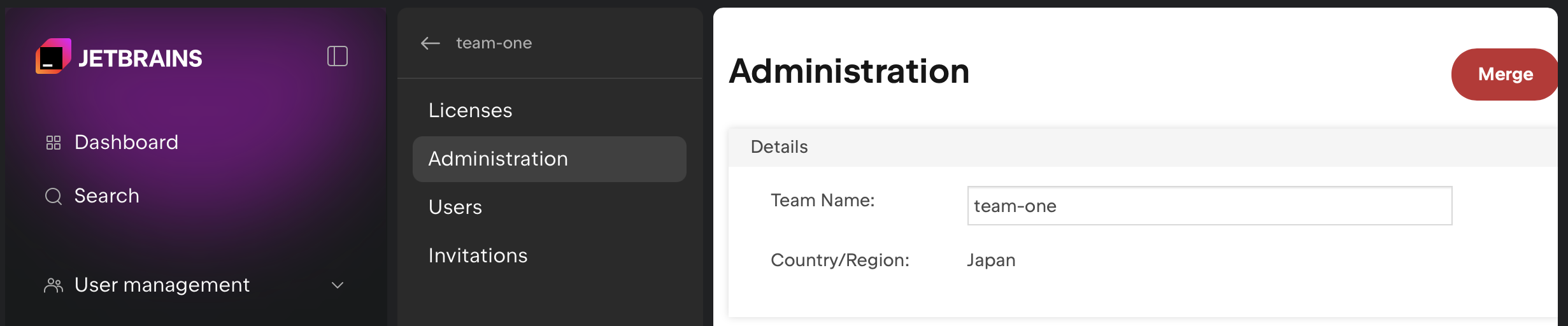 オーガニゼーションのチームを統合することで減らすことが出来ます。統合を行うと、全てのライセンスは統合先のチームに移動します。